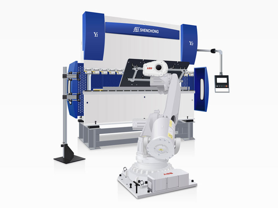 6軸或7軸機器人配6+1、7+1、8+1軸數控折彎機對金屬板料進行全自動折彎.配有對中臺和翻面托架等附件.運用折彎機械手
